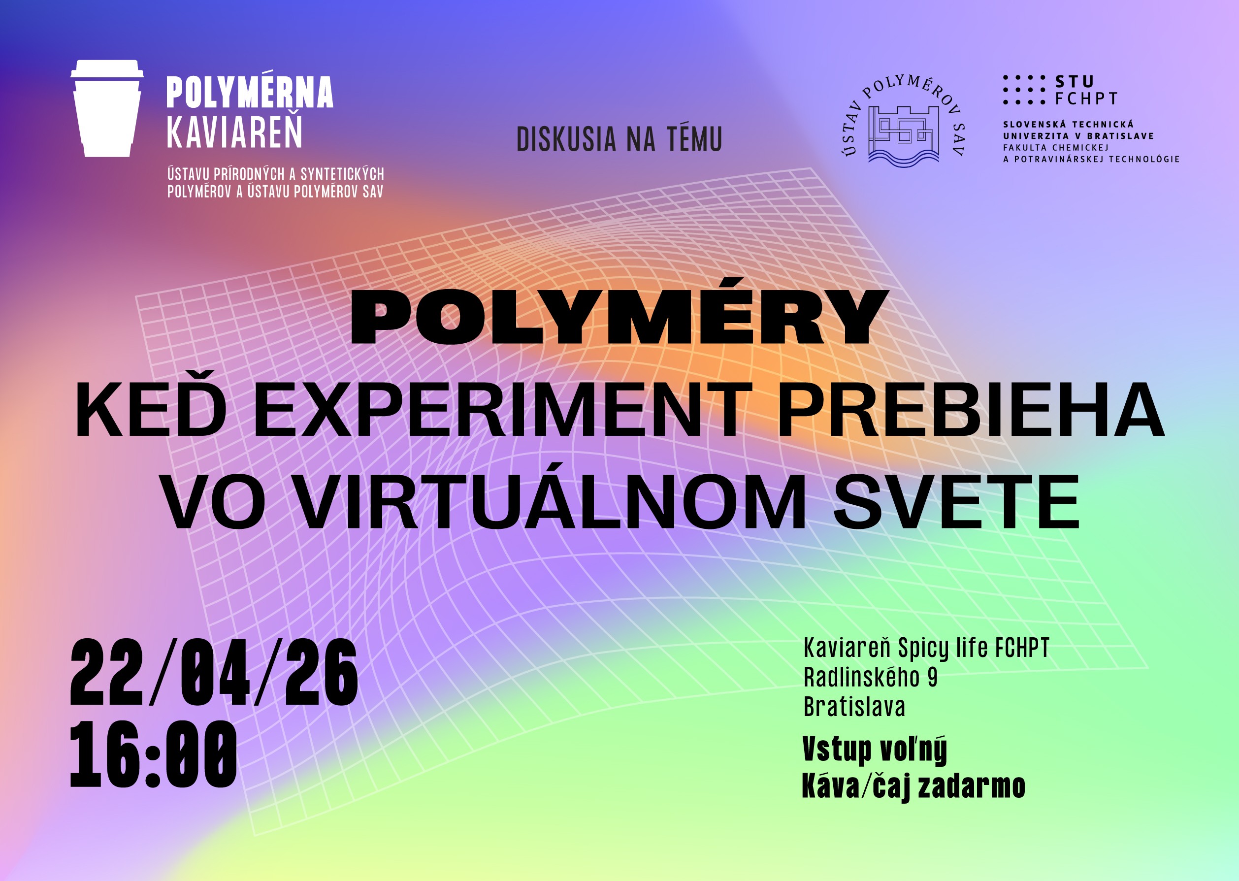 Ako sa experiment premieta do virtuálneho sveta? Aké sú limity a možnosti počítačových simulácií pri štúdiu polymérov? Dokážu počítačové modely v budúcnosti nahradiť klasické experimenty? Na tieto a ďalšie otázky je možné získať odpovede počas pripravovanej diskusie na tému „Polyméry – keď experiment prebieha vo virtuálnom svete“ v rámci cyklu Polymérna kaviareň. Táto diskusia priblíži aktuálne trendy, výzvy a perspektívy molekulového modelovania polymérov ako dynamicky sa rozvíjajúcej oblasti výskumu.